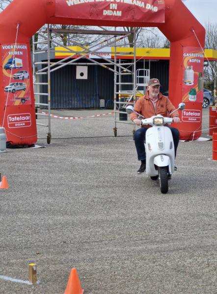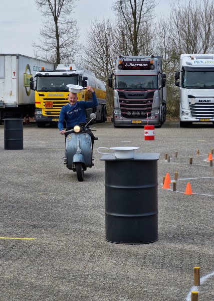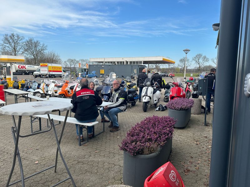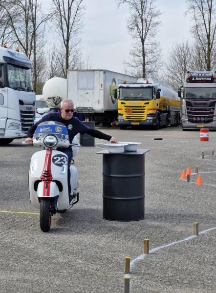 Zaterdag 22 maart was onze sleutel/gymkhana dag bij tankstation Tatelaar in Didam. Het was een prachtige dag om te rijden dus vrijwel elk lid kwam op de Vespa. Er lag een mooi gymkhana parcours voor wie zijn of haar kunsten wilde vertonen op de Vespa. Buiten stonden diverse tafels alwaar men een warm kopje koffie of thee kon drinken met een lekkere koek erbij en tussen de middag werd er gezorgd voor een een heerlijk broodje van Brödje van de bakerij bij het tankstation.