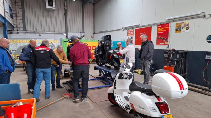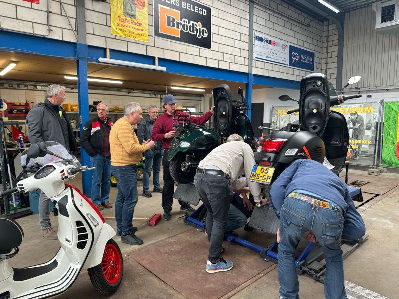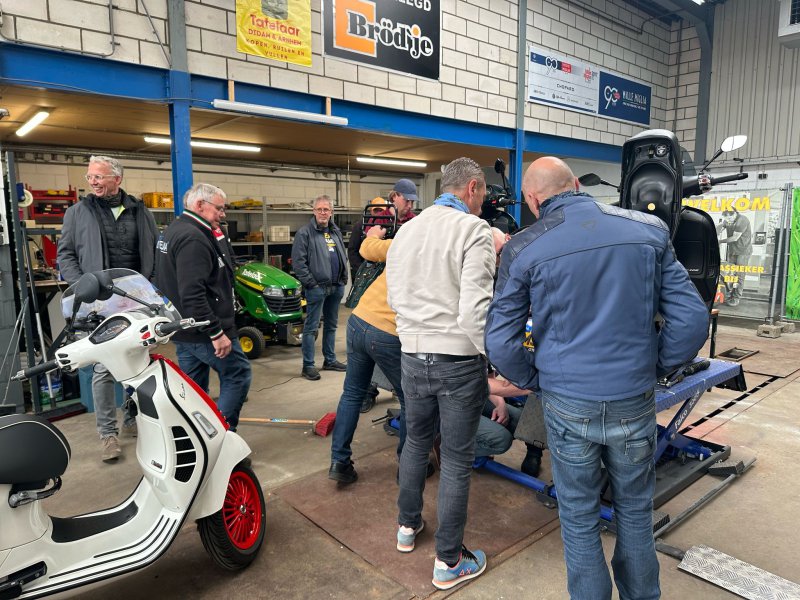 Uiteraard werd er ook gesleuteld en waren beide bruggen in gebruik om twee GTS Vespa’s weer probleemloos te laten lopen. Er werd weer heerlijk bijgekletst over de komende Vespa activiteiten van zowel onze club als van zusterclubs en evenementen over de grens.